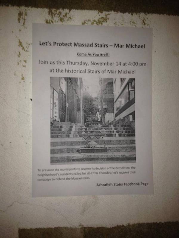 لوقف اعمال بلدية بيروت لهدم درج مسعد الذي يربط منطقة مستشفى الروم بمنطقة مار